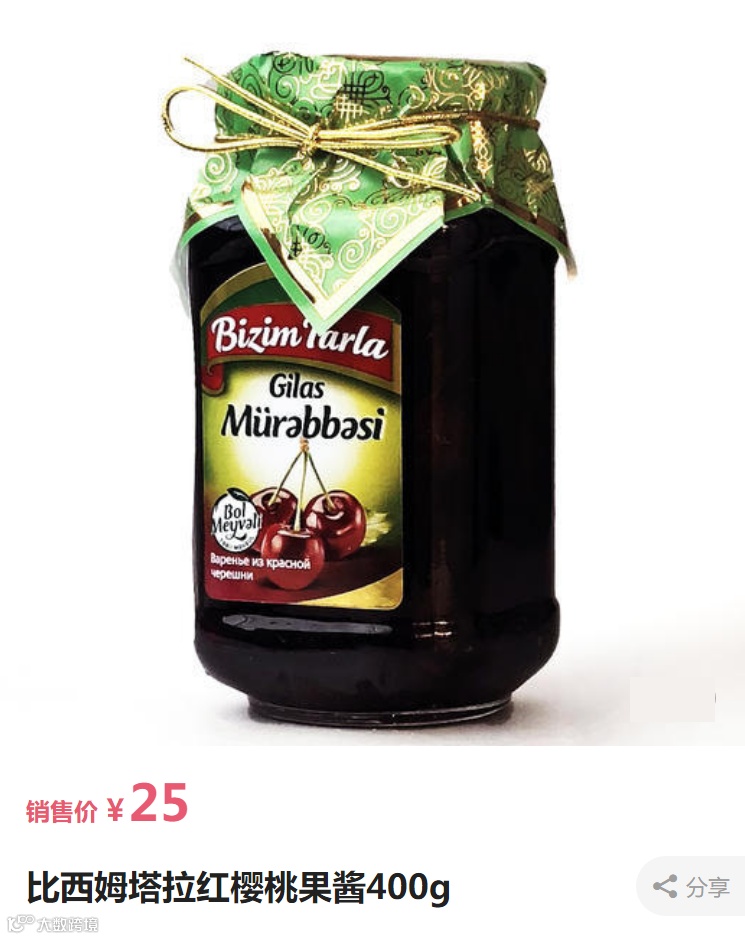 阿塞拜疆的果酱四兄弟,不同于一般的果泥果酱,零脂肪、无添加的大颗果粒状的果酱,一定能让您获得超级满足感。