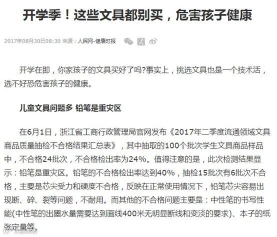 以下是小编摘自2017.8.30的人民网-健康时报报道: