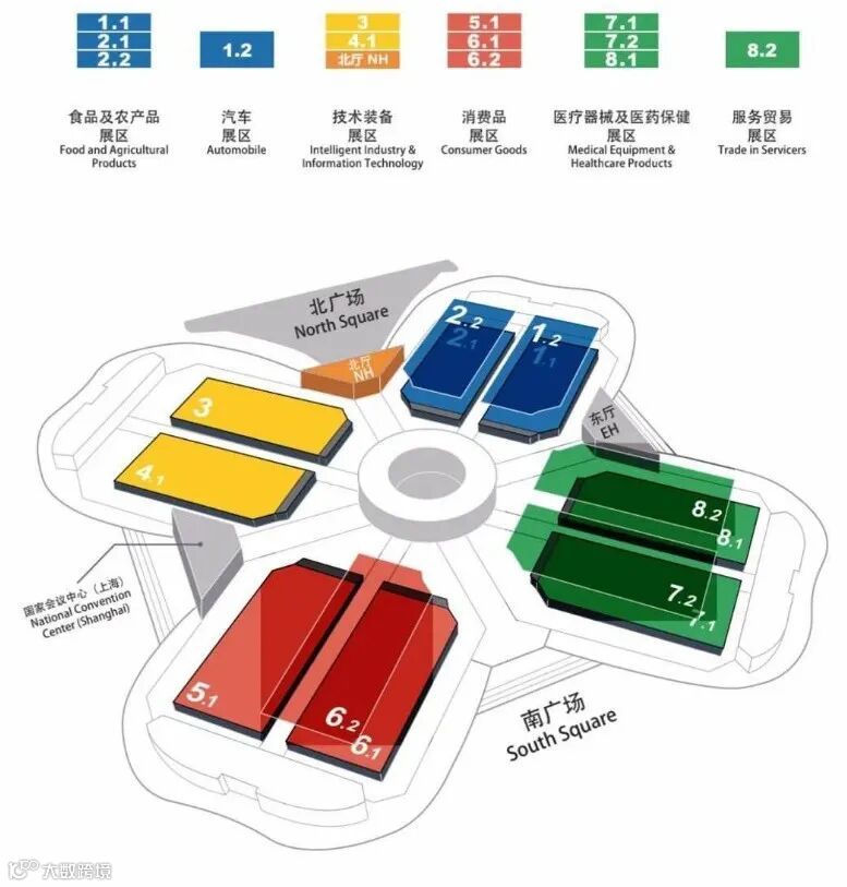 首先来到的是国展中心会场的核心——四叶草场馆的花蕊位置,在这里有一个近200平方米的“中国(上海)自贸试验区国别(地区)中心展馆“专属体验展示区。