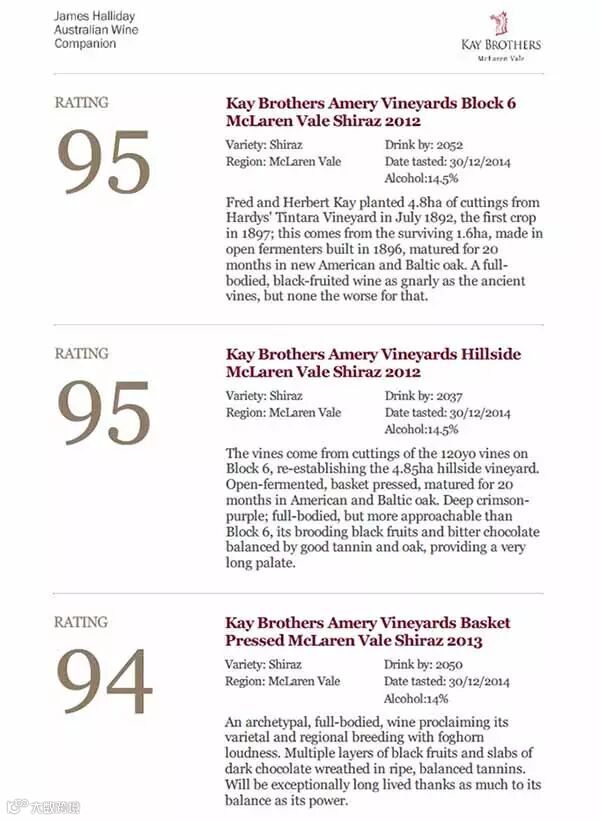 ● Kay Brothers Amery Vineyard Block 6 Shiraz凯氏兄弟庄园艾美丽6号西拉