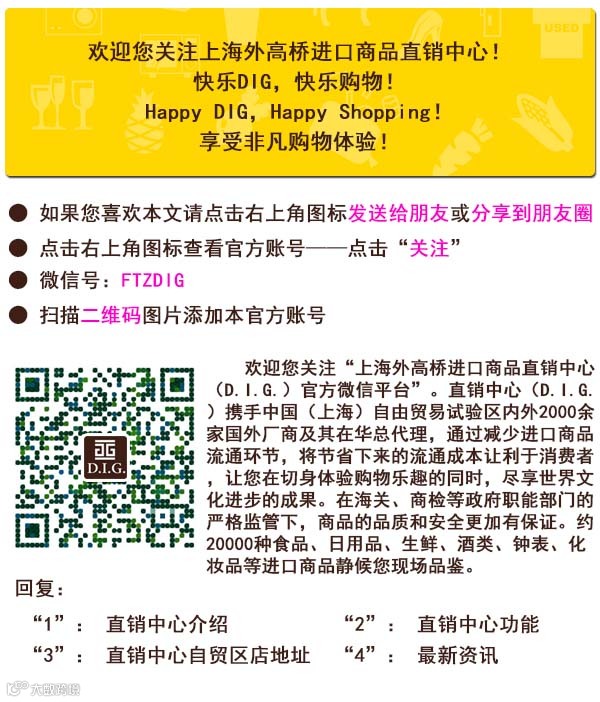 ----- 更多商品资讯敬请关注D.I.G.直销中心官方微信平台 -----