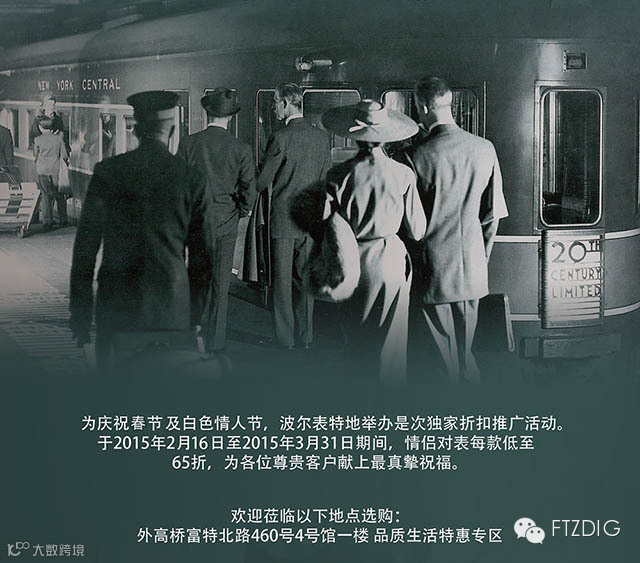 为庆祝春节及白色情人节,波尔表特地举办是次独家折扣推广活动。于2015年2月16日至2015年3月31日期间,情侣对表每款低至65折,为各位尊贵客户献上最真挚祝福。