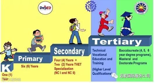 由于菲国的学制是小学 6 年,中学部(初中加高中) 4 年,共计 10 年,大陆小学 5 年、预备班 1年、初中 3 年、高中 3 年,共计 12 年,所以大陆之高中、高职、中专毕业生或二年级以上可直接申请大学。且菲律宾认定三年以上的大专学历就可相当于本科毕业,所以大陆的大专毕业生,菲国以College Graduate来认定,所以大陆的大专及大学生可直接申请研究所,(年约 1 年 6 个月,可完成硕士课程)。