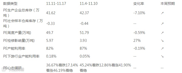 3、PE产量是指国内生产企业的周度总产量。