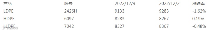 3、PE产量是指国内生产企业的周度总产量。