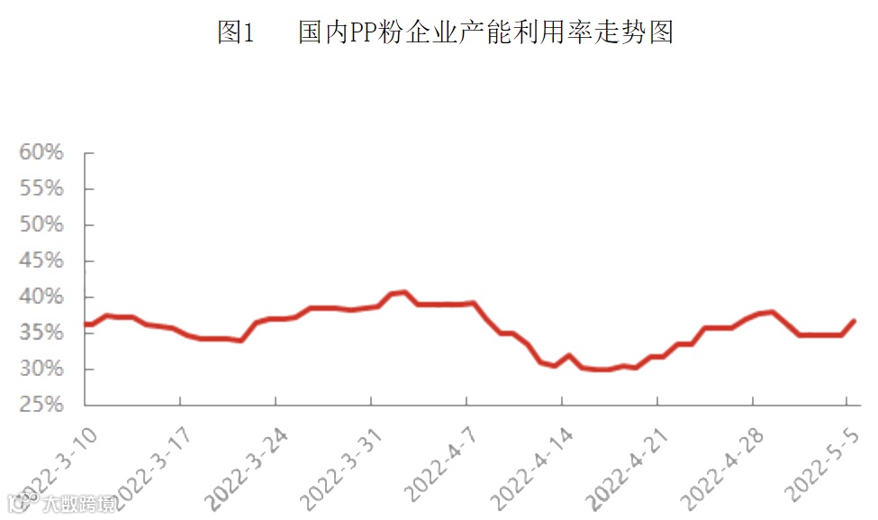 五一小长假期间(4月30日-5月4日),国内PP粉企业整体产能利用率在34.94%左右,较节前一周下降0.61个百分点,其中虽润丰在节前重启后平稳运行,但节日期间
