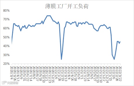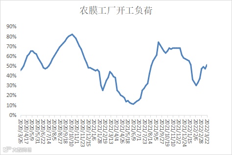 上周农膜开工负荷小幅反弹,地膜生产旺季临近,以及部分地区疫情缓解,物流运