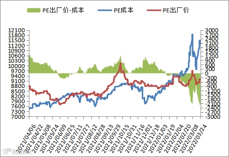 价部分上调,PE生产企业利润亏损产量下降,两油及煤化工库存下降,刺激现货