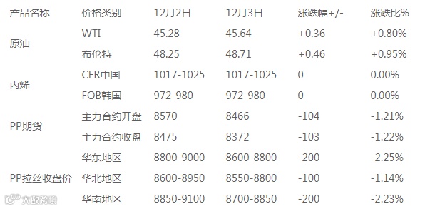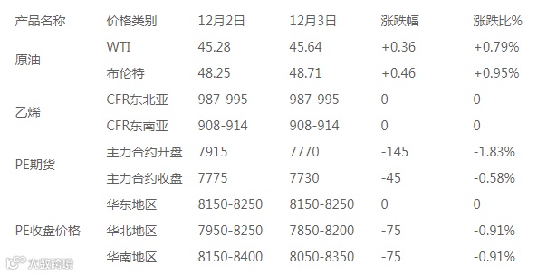 2、国内石化销售政策:昨日中油西北、中油东北、中油华南、中油西南、中油华北部分价格下调;中石化华中、中石化华南定价下调。