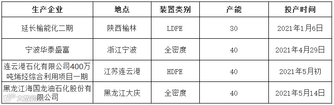 一、国内PE装置新装置投产来袭