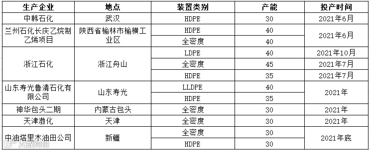据统计,2021年属于聚乙烯集中投产装置大年,下月中韩石化低压、