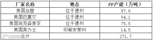 据不完全统计,截止到目前可统计到美国因极寒天气影响,涉及到聚丙烯装置停车产能总计271.7万吨。由于极寒天气影响,不排除陆续还有装置受影响停车。由于国内从美国进口PP量有限,故美国PP价连续走高,虽暂时未直接影响到中国市场,但由于