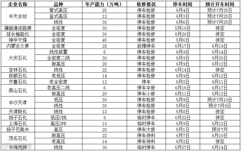 中沙天津低压装置停车大修、蒲城停车大修、煤化工部分全密度装置生产线性,华北、西北地区低压开工率均60%左右;