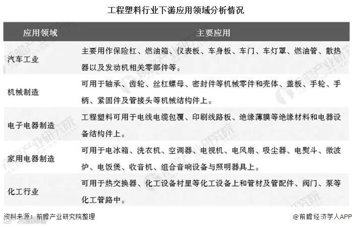 工程塑料被广泛应用于电子电气、汽车、建筑、办公设备、机械、航空航天等行业,以塑代钢、以塑代木已成为国际流行趋势。工程塑料已成为当今世界塑料工业中增长