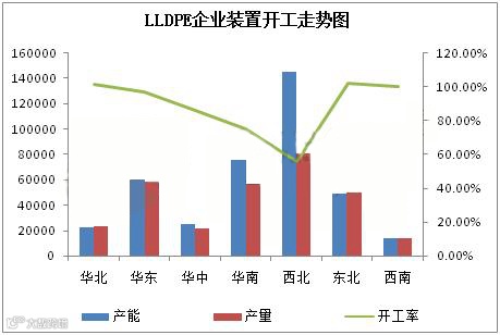 西北地区兰州石化全密度装置故障停车、蒲城清洁能源停车检修、内蒙古久泰故障停车以及部分煤化工全密度装置生产低压,西北地区线性开工率55%左右;