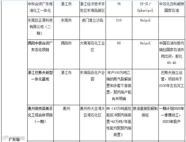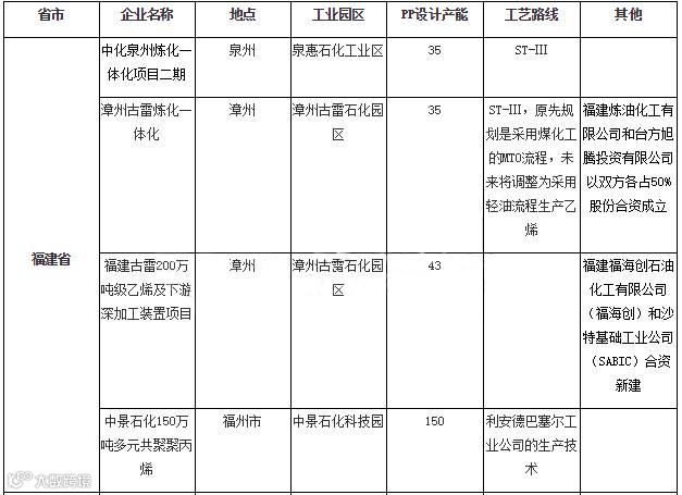 由于投产区域不同,工艺选择各不相同,内地新型煤化工、沿海原油新炼化、轻烃资源利用等项目均在规划筹建或施工阶段。华南大区已成为全国主要的聚丙烯生产基地,未来也是新装置集中投产区域,项目的持续上马将减少聚丙烯对外依存度,有效改变聚丙烯市场供需格局,降低运输成本同时带动下游塑料加工企业的发展,下面我们就华南大区投产装置进行简单汇总分析。