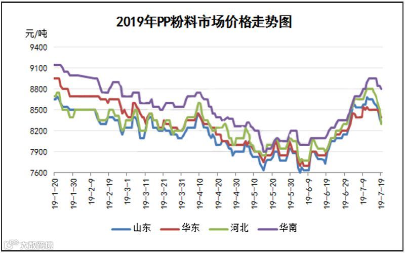自6月底以来,粉料受成本支撑价格一路飙升,但上周PP粉市场笔锋一转,打破了前期涨势局面,开启下行通道,跌幅高达300元/吨。此波行情似乎业者并不意外,主要还是因为前期粉料价格的上涨多半是因丙烯市场居高不下的支撑,故一旦丙烯走跌,粉料将紧随其后。那此波粉料跌势具体原因有哪些呢?分析如下: