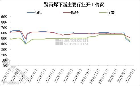 对于聚丙烯的下游开工来看,短线仍旧不是特别乐观。据市场消息以及卓创调研得知,目前相对较大的膜厂开工负荷基本可在80%-100%,但中小企业多数开工不足,多数负荷在50%附近;塑编行业受约束条件较多:包括环保政策、订单分散、需求不足、成品库存高以及利润压缩等原因,多数开工较低,普遍在30%-50%。且多数下游业者表现今年来自终端的订单减少,整体开工率较去年相比是下降的状态。