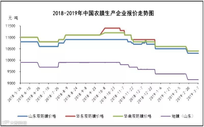 本周农膜价格平稳,成交一般。PE 原料价格窄幅震荡,农膜成本变动不大,下游需求逐渐跟进,地膜生产好转,报价维稳为主。截至周四,山东地区双防膜主流价格 10200-10400 元/吨,华东地区双防膜主流价格在 10300-10500 元/吨。均较上周末价格持平。农膜开机率在 43%左右,较上周上涨 24 个百分点,生产增速较快。随着地膜生产旺季到来,企业开机提升较快,开机率一般在 5-8 成,日产量在 20-100 吨。棚膜需求偏淡,订单跟进稀少,开机率一般在 1-4成不等,日产量在 10-50 吨,小型企业停机为主。西北、西南地区部分以招标订单为主的地膜企业生产尚可,其他企业开机一般。