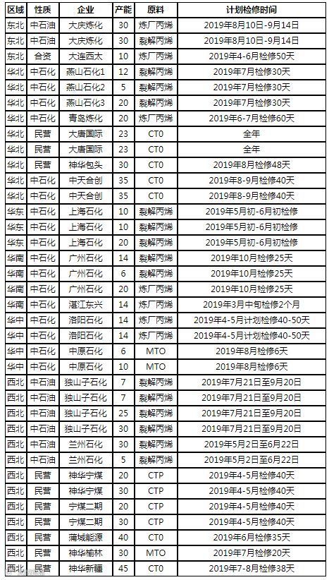 据卓创统计,2019年中国聚丙烯拟建新装置如上,全年计划新增产能约525万吨,综合考虑装置投产推迟及开工率等情况,卓创预计2019年中国新增产能将为全国带来约180万吨的产能增加。