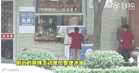 这两天,杭州就出现了这样一个冰柜,专门为快递员、清洁工、交警、外卖小哥,这些在烈日下工作的人,提供免费送水的活动,全程无人看管,全凭自觉。