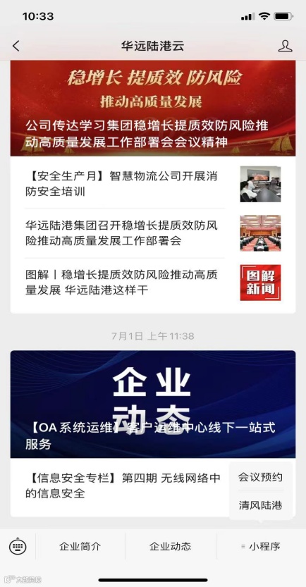 方法一(推荐):关注“华远陆港云”微信公众号,点击小程序,选择“清风陆港”小程序。
