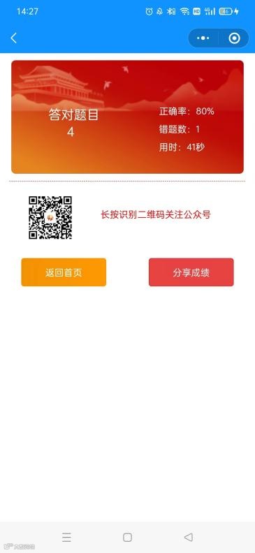 4.完成答题并提交后,即可弹出成绩单。