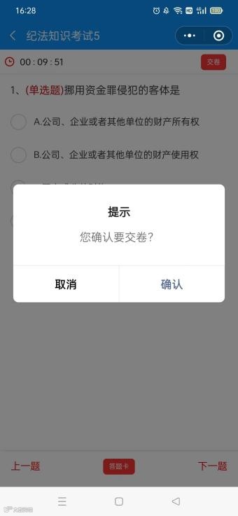 3.点击选项即可进行做答,可以通过点击下方答题卡查看是否遗漏题目,答题完成后可以点击交卷进行提交。