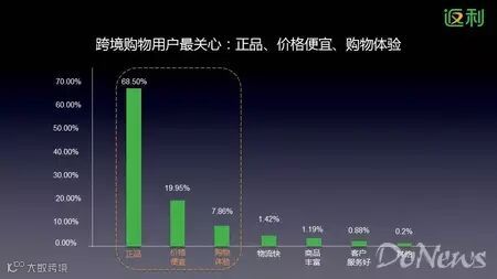 而在整个跨境购物环节中,“正品”、“价格便宜”、“购物体验”等因素是影响消费者进行购物决策的主要因素。