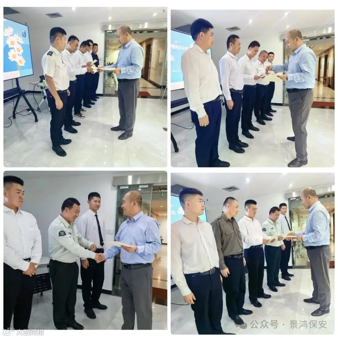 10月18日下午,景鸿保安公司在景鸿大楼3楼培训教室,举行2024年储备干部专题培训班毕业总结座谈会。景鸿集团副总裁兼保安公司董事长郝云玲、景鸿保安公司张万军总经理出席座谈会。