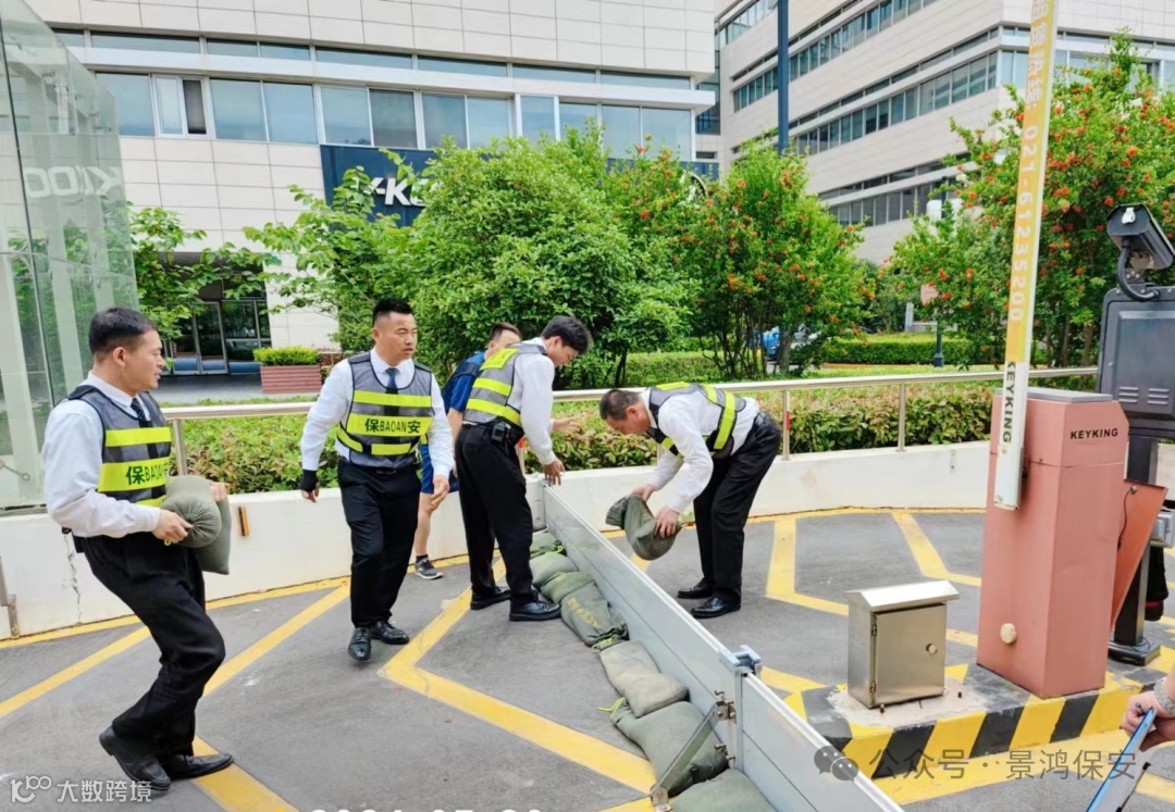为有效应对汛期可能发生的突发事件,提高防汛抢险实战水平和快速处置能力,保障客户单位生命和财产安全。近日,景鸿保安联合客户单位开展防汛应急演练,增强客户单位和保安队的应急处置及协调配合能力,确保在遇到防汛突发事件时能够快速、有效、有序的实施抢险救援工作。