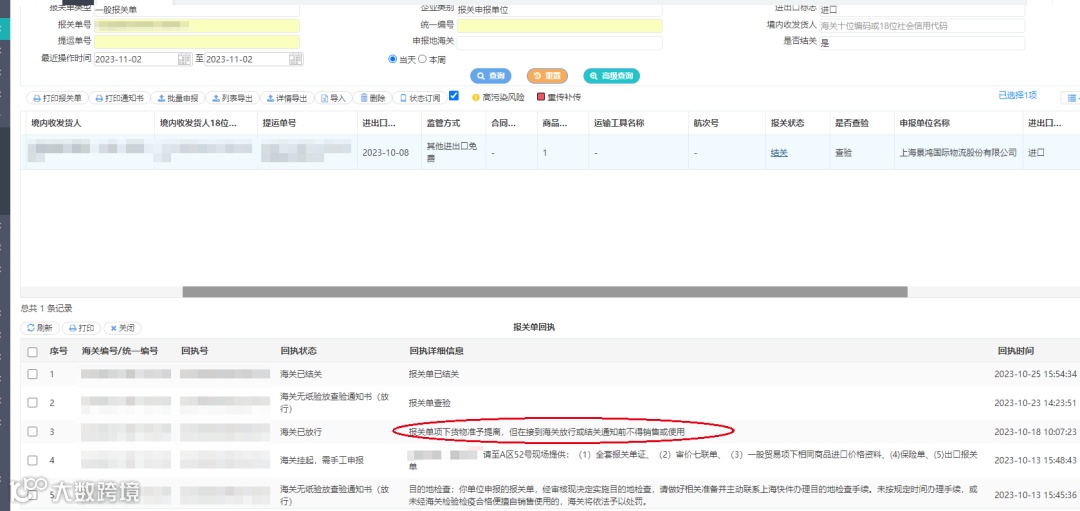 近期,景鸿物流华东储运事业部外高桥报关部接到某医疗器械公司的业务需求,需申报一票生物指示剂状态读取器(旧)的快件货物。该票货物不幸命中目的地查验,申报地海关以及境内目的地均为上海企业信息。由于一直未安排到查验,且货物紧急,在单证未结关的前提下无法使用。