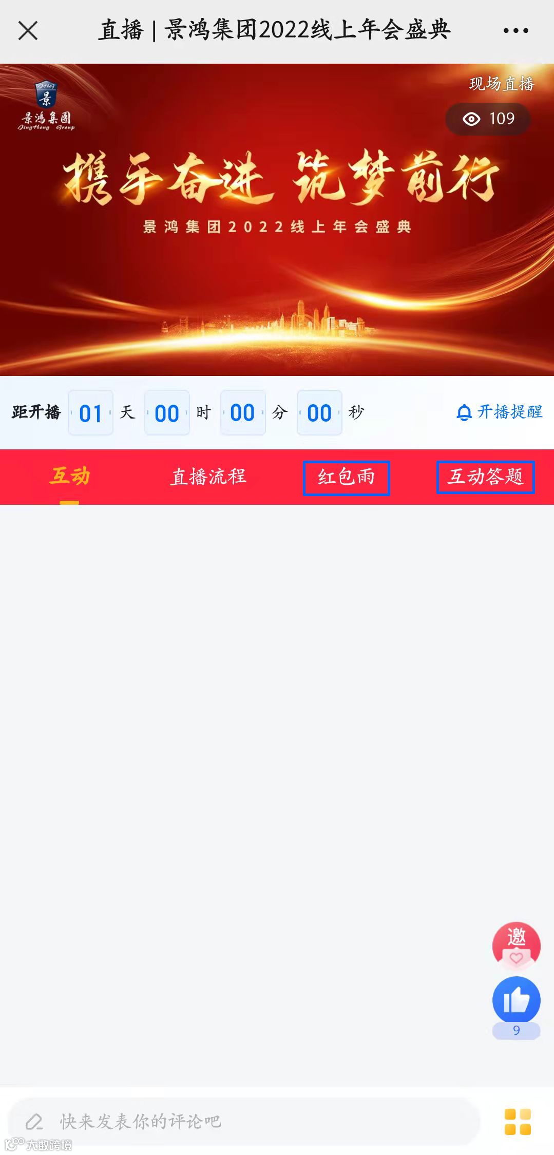 进入年会页面后,下方将显示游戏红包雨及互动答题的选项,点击即可进入(手机横屏观看年会时不显示,需返回竖屏状态)