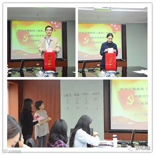 会议的第一个议程是进行本部支部的换届选举。首先由本部支部书记程颖同志向大会作第一届支部工作汇报。程颖书记向与会党员报告了第一届支部在以政治学习为抓手,推进学习型支部建设;以制度规范为抓手,加强支部组织建设;新党员组织发展工作;以及与党工团携手,关爱职工,开展活动,做好景鸿企业文化建设,提升企业凝聚力等几方面工作的开展情况。接着根据会议议程,表决通过了选举办法及监票人、总监票人,经过与会党员的民主选举,程颖、叶梦佳、王雅芳三位同志当选第二届本部支部委员。