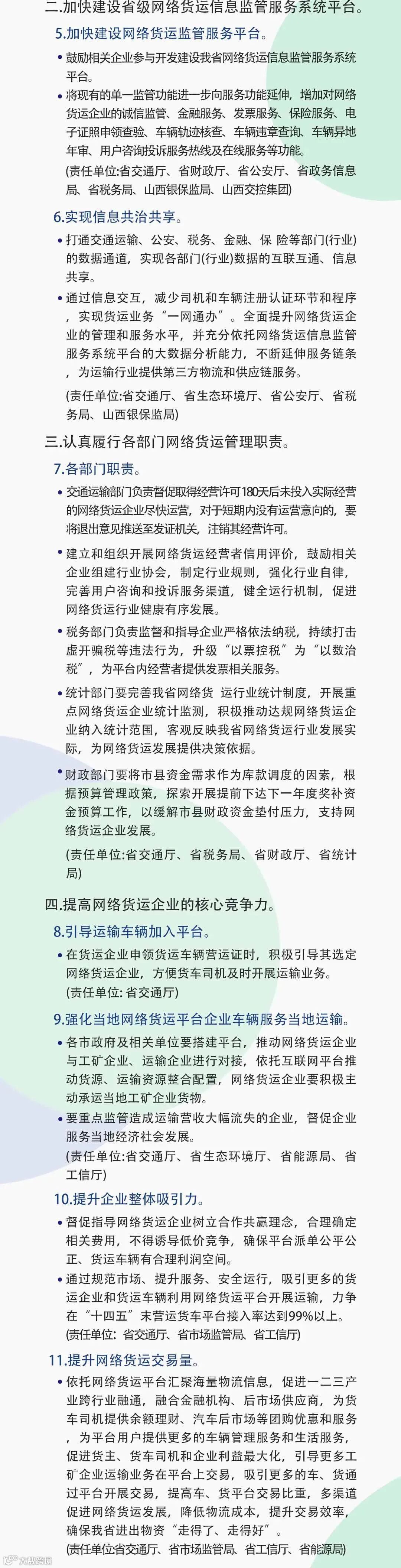 图文解读丨山西省促进网络货运行业健康发展的若干措施