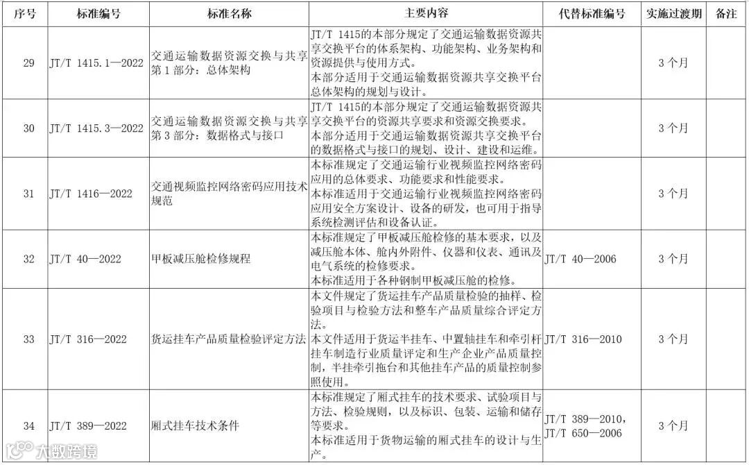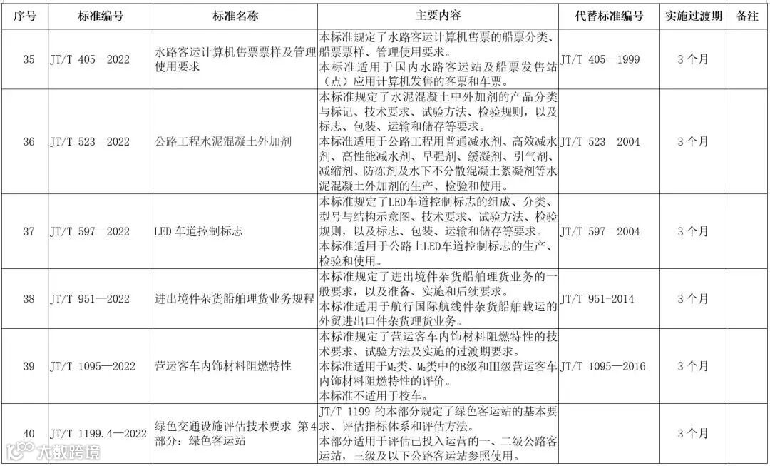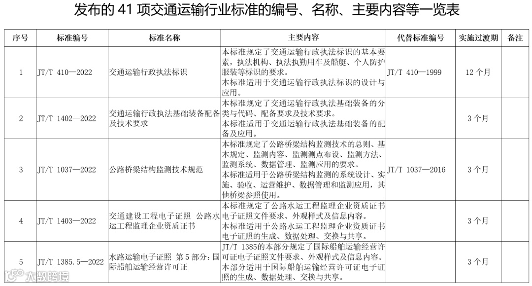 附件:发布的41项交通运输行业标准的编号、名称、主要内容等一览表.