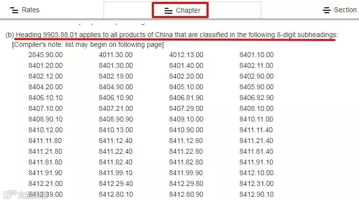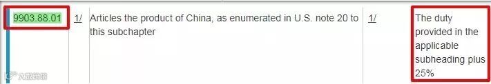 继续在网页中查询“9903.88.01”,这里就明确提及,这一部分的中国产品在适用税率基础上再加25%。