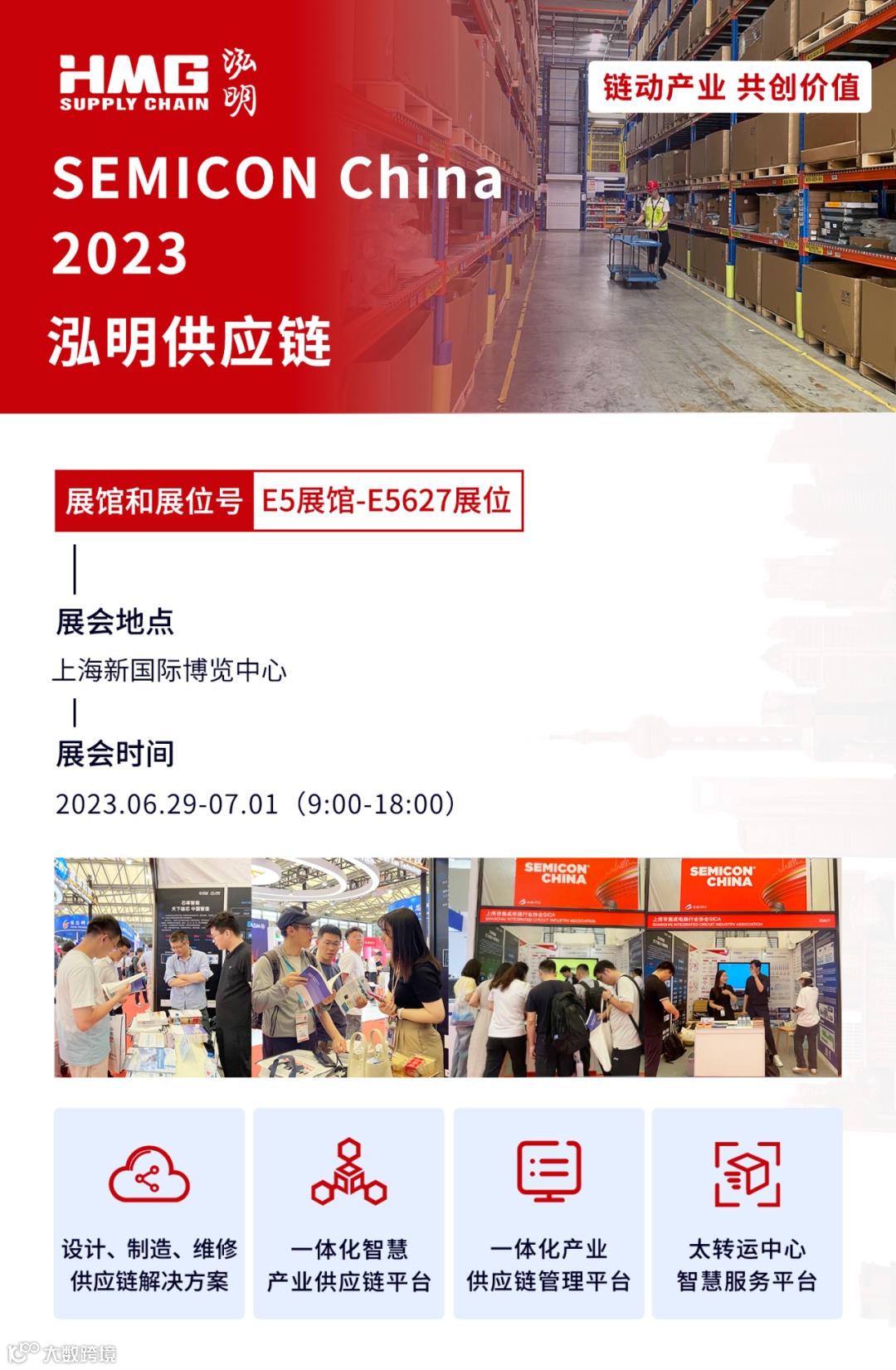 此次泓明供应链携大半导体供应链解决方案和平台,与上海集成电路行业协会一同登场亮相SEMICON China 2023,共助产业高质量发展。