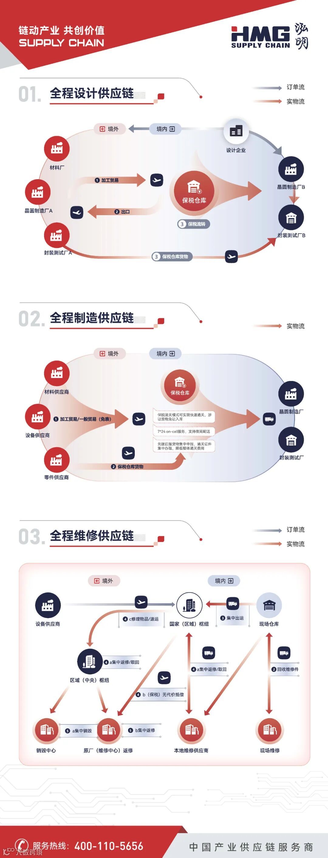 2.一体化产业供应链管理平台:整合全球资源再配置,覆盖订关仓包质运配修等业务,提供全程供应链解决方案。形成产业价值链集聚效应,提高产能效率。