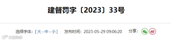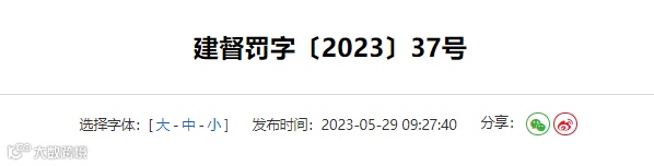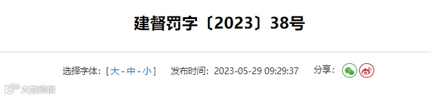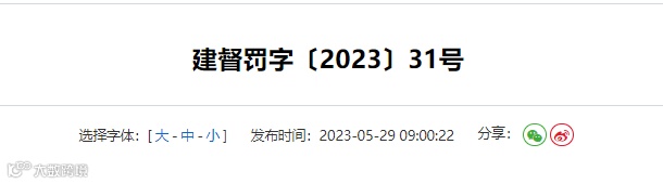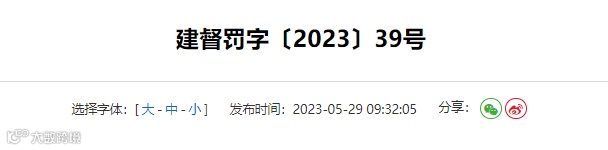 5月29日,住建部发布10则“建督罚字”,因涉及生产安全责任事故,10人被行政处罚。