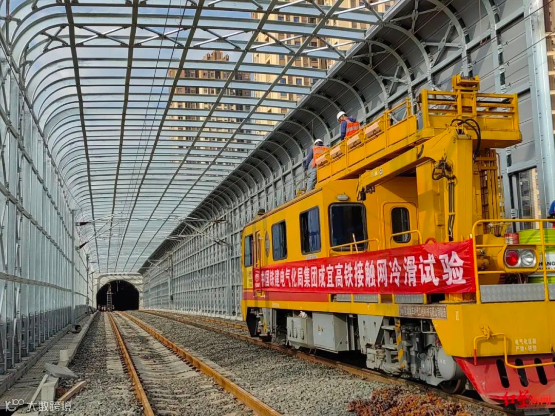 8月21日上午,随着56002次冷滑试验车从成都东站始发,标志着成宜高铁接触网工程冷滑试验正式开启,为下一阶段接触网送电、热滑试验和联调联试提供了有力保障,确保年内高标准、高质量开通运营奠定了坚实基础。