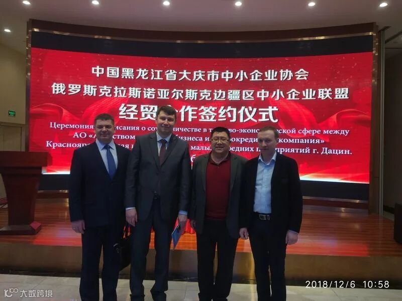 12月5日,中国黑龙江省大庆市中小企业协会和俄罗斯克拉斯诺亚尔斯克边疆区中小企业联盟经贸合作浅谈会在大庆市召开,大庆市副市长于宸和克拉斯诺亚尔斯克市副市长波利修克出席了本次洽谈会。