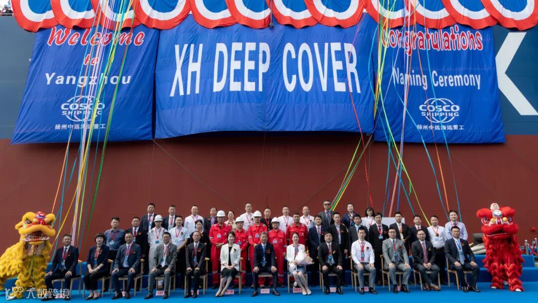 仪式上,CX0818轮教母、浙银金租副总裁陈柠,N1155轮教母、嘉宾冯委令女士分别将新船命名为“XH DREAM”、“XH DEEP COVER”,并致香槟礼。