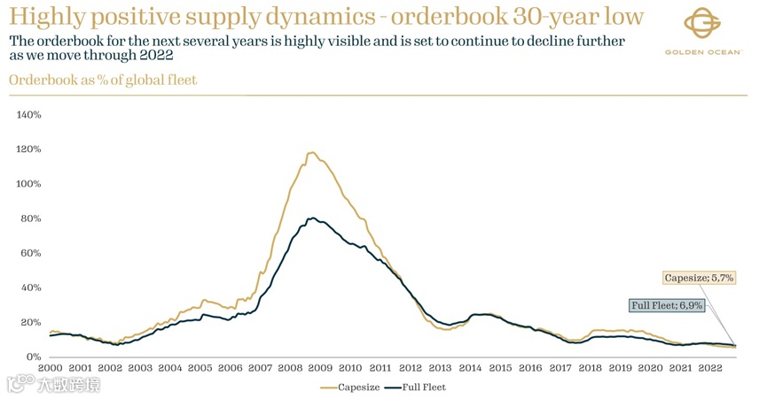 鉴于新造船价格上涨,缺乏具有竞争力的融资,造船厂的产能限制,以及对新环境法规带来的不确定性犹豫,Golden Ocean预计干散货新造船订单不会大幅增加。
