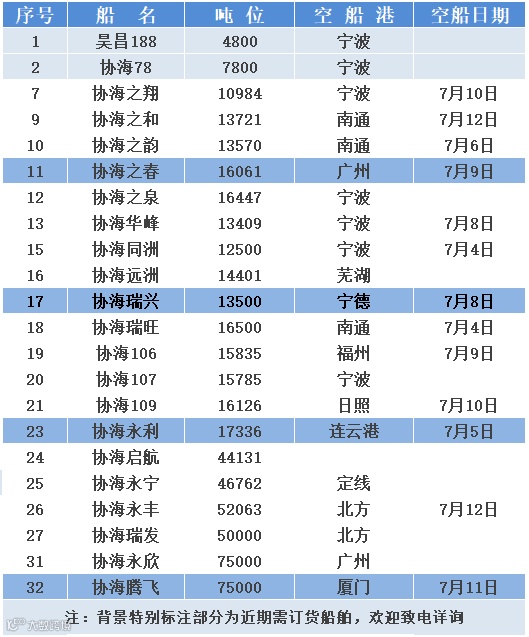 协海集团 | 7月2日船期表