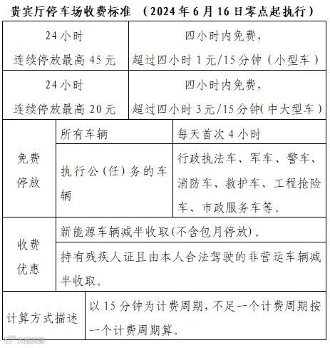 附:贵宾厅停车场收费标准 (2024年6月16日零点起执行)