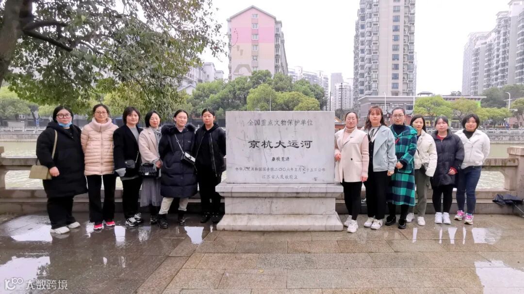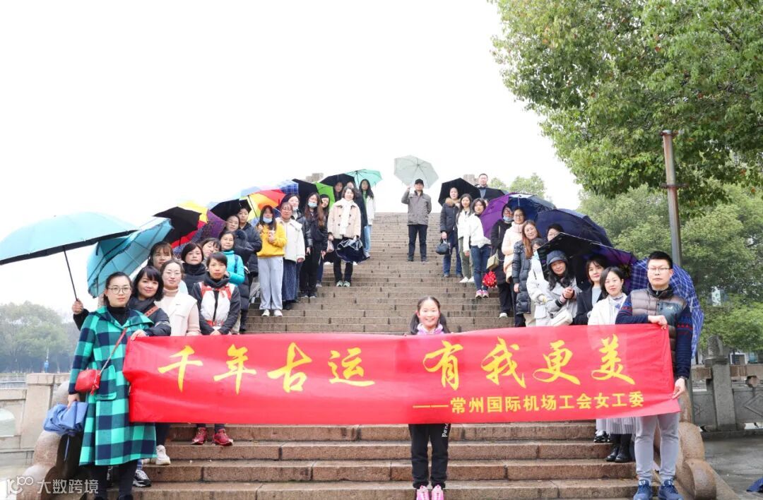 烟花三月天,烟雨醉江南。上午九时许,在蒙蒙细雨中,女职工们撑着花雨伞,伴着浅浅的绿意和淡淡的花香,穿过青石板小路,三三两两来到东坡公园,在半月岛仰苏阁前集结,同赴这一场“运河之约”。