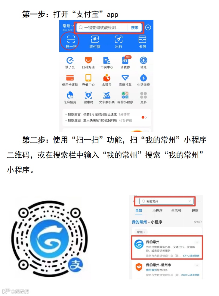 方法二:打开支付宝搜索“我的常州”小程序,选择“来常返常直报”,操作流程同上。