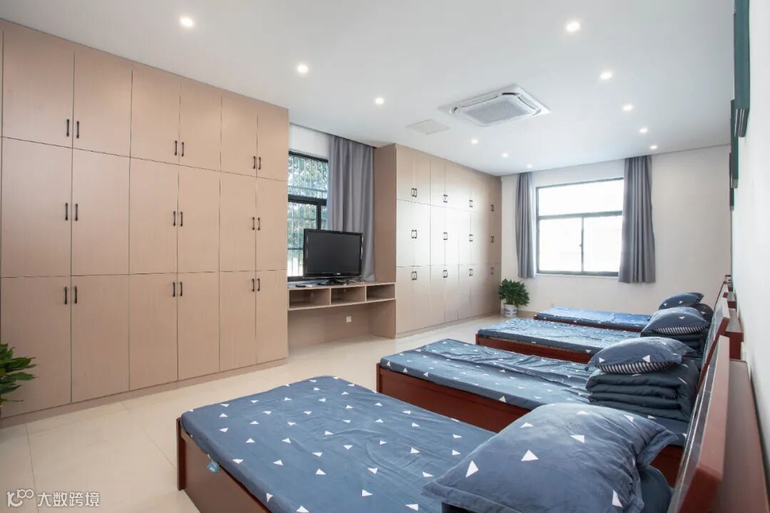 导读:宿舍内书桌、空调、电视机应有尽有,干净整洁的卫生间内还配有洗衣机、热水器,健身房里摆放着各式健身器材,一旁的