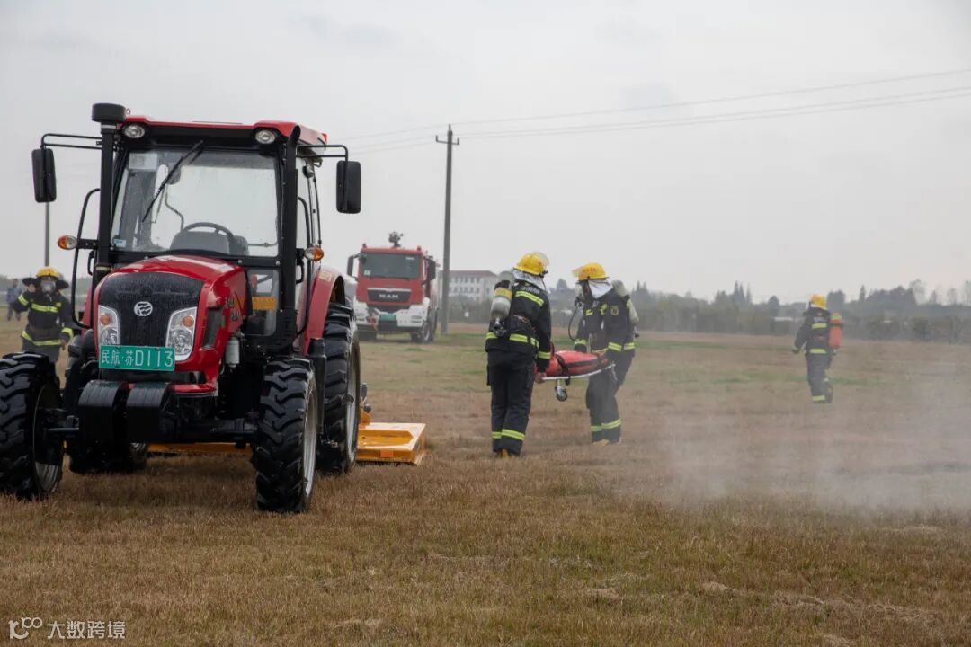 此次演练根据《民航机场专职消防队实战大练兵(2020-2022 年)总体方案》及《提升江苏民用运输机场消防应急救援作战能力的通知》要求,采用“无脚本、无合练、无预演”的形式,以某航班落地后在滑跑过程中由于前起落架轮胎爆裂冲出跑道导致右起落架起火为背景。